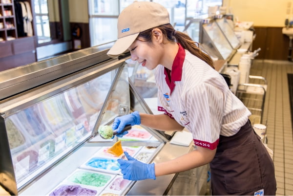 - 接客業は苦手な方もいる職種とは思いますが、普通に過ごしていたら出会えないであろう沢山の人に出会える事が多々あります。まさに毎日が『一期一会』です。お客様はもちろんの事、一緒に働くメンバーも個性豊かで楽しい現場ですので、ぜひ一緒にブルーシールスタッフとして働きましょう♪