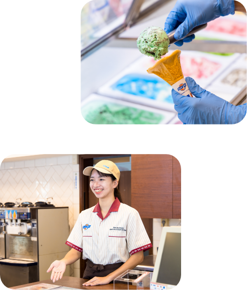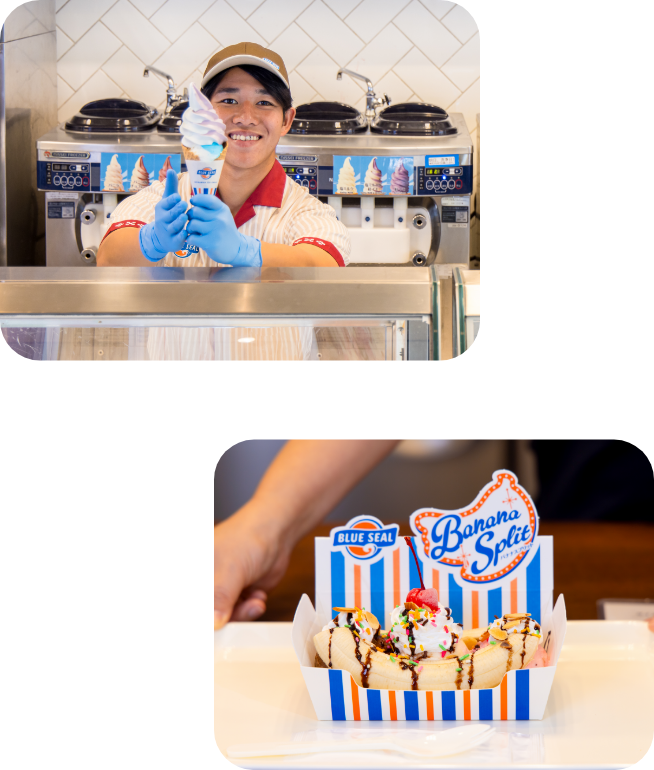 - ブルーシール歴は歴史もあり、働いている皆の笑顔も絶えずとても心地の良い場所です。アイスクリームを通じて、様々なお客様や、たくさんの仲間と関わる事が出来る素晴らしい職場です、最高の経験をする事が出来ます。是非一緒に働きましょう。